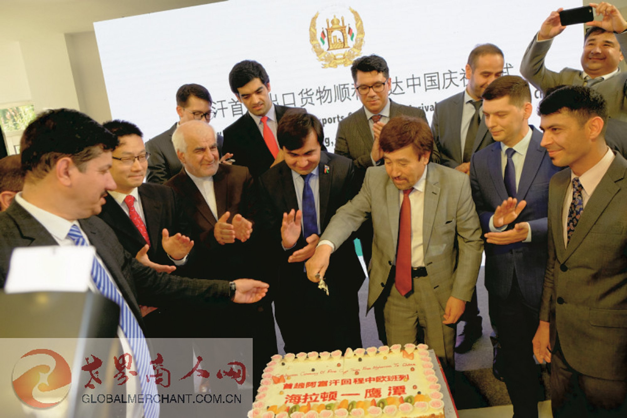 阿富汗首发出口货物顺利抵达中国庆祝仪式交流现场
