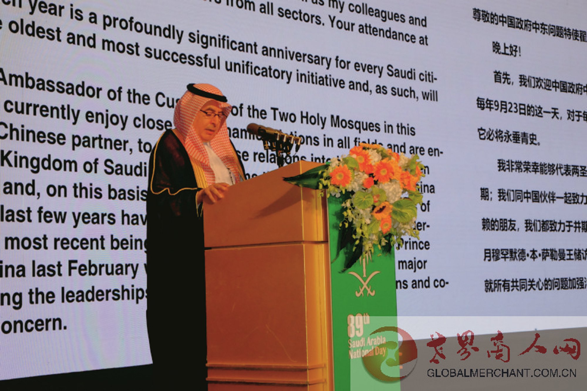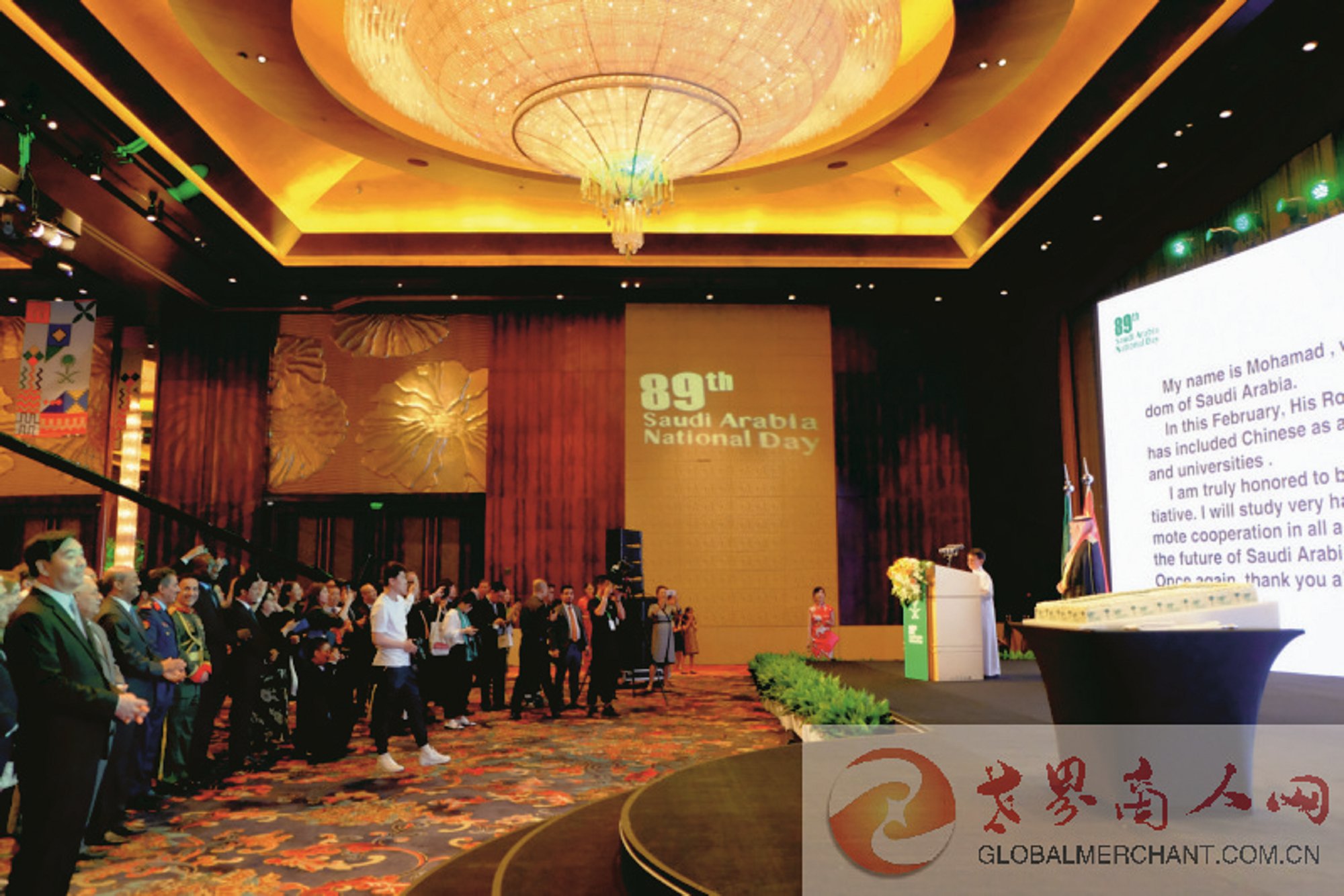 2019年9月23日,第89届沙特阿拉伯王国国庆招待会在北京成功举行。沙特驻华大使图尔基·艾勒马迪阁下携夫人莎拉·艾勒马迪女士、少子穆哈莫德作为东道主热情欢迎前来祝贺的八方来客。中国外交部前副部长、中国前驻法国全权大使、现任中国中东特使翟俊先生作为中方主宾出席并致辞。