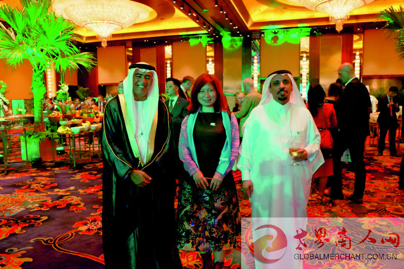 环球云链·世界商人网主编王晓玲与沙特驻华使馆文化参赞Fahad Majed F.Alshareef博士(右1),阿联酋驻华大使阿里·扎希里(左1)合影