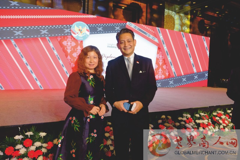 环球云链传媒机构董事总经理、世界商人网主编王晓玲与印度尼西亚驻华公使狄诺先生会面、愉快合影