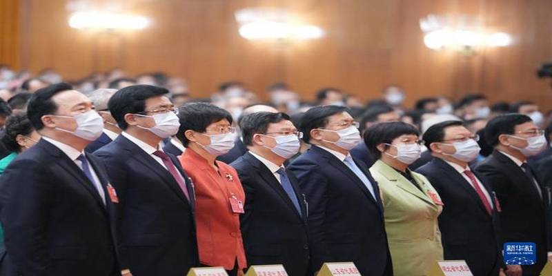 习近平、李克强、汪洋、王沪宁、赵乐际、韩正、王岐山和大会主席团成员在主席台就座。