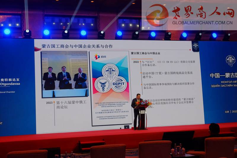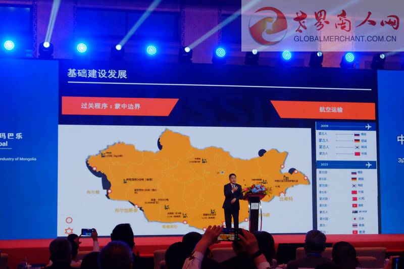 论坛上,蒙古国矿业和重工业部长扎·钢巴特尔、交通运输发展部部长宾巴朝格特等在专题研讨环节致辞,来自矿业、建筑、贸易、旅游、运输、畜牧业等300余家中方企业代表与来访的100余家蒙古国企业代表进行了一对一洽谈。本次论坛由中国贸促会和蒙古国工商会共同主办,适逢奥云额尔登总理生日当天,进一步营造了现场热烈的合作氛围。两国政府官员、工商界人士及媒体代表等约500人出席活动。侨世华贸国际贸易集团携世界商人网出席进行商务交流,达成物流、文旅、娱乐等数个领域项目合作意向。