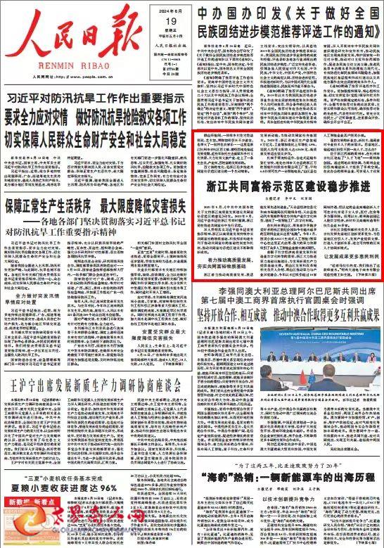 近日,《人民日报》头版刊发《浙江共同富裕示范区建设稳步推进》一文,点赞杭州多个共富案例!