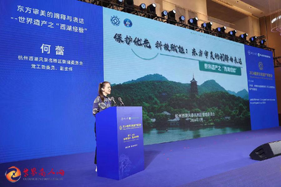杭州西湖风景名胜区管理委员会党工委委员、副主任何蕾代表西湖参会,并发表《保护优先,科技赋能:东方审美的阐释与表达——世界遗产之“西湖经验”》主旨报告,从西湖世界文化遗产系统性保护体系建立、西湖世界遗产价值挖掘和阐释、世界遗产交流互鉴等方面展现西湖东方美学的精髓以及西湖保护的成果和经验。