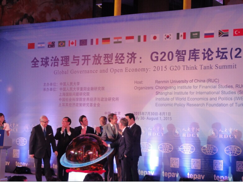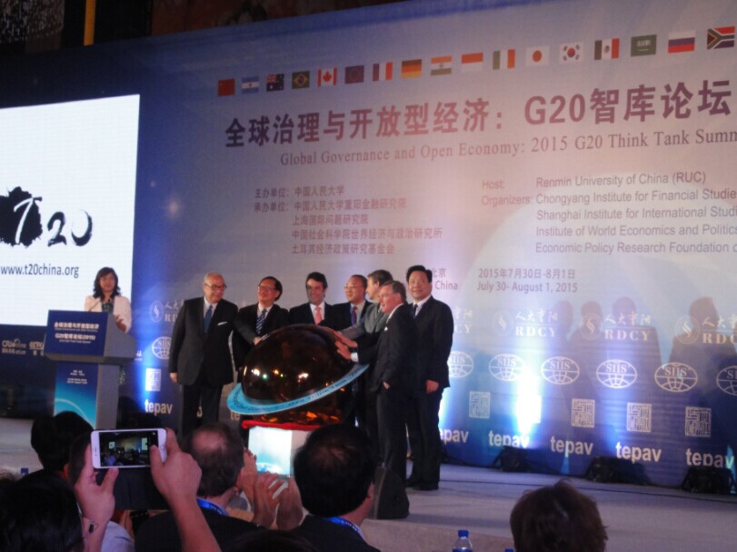 2015年7月30日,有史以来规模最大的G20国家智库论坛在北京开幕,来自中国、美国、英国、日本、德国等全球最重要20个大国顶级智库代表、部分政要及500多位听众参会,为今年年底的土耳其G20峰会和2016年即将在中国召开G20峰会献计献策。中国宝贝国际投资集团也应邀参加。亚太城市网全程跟踪报道。