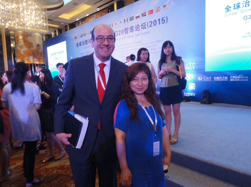 亚太城市网主编王晓玲在G20智库论坛(2015)开幕式上与墨西哥驻华大使馆公使恩里克·艾斯格尔萨先生合影