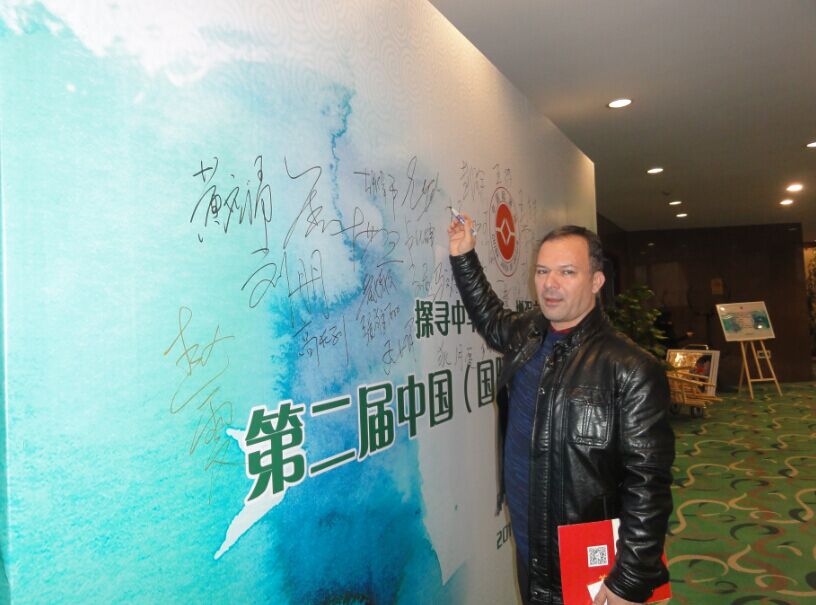 伊朗驻华商务参赞,伊朗工业、矿业、贸易部中国代表阿格扎戴先生在第二届中国(国际)起源地文化论坛签名