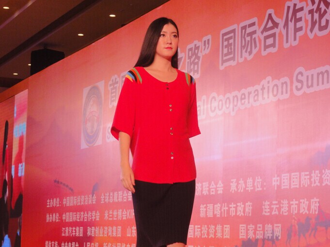 首届丝绸之路国际合作论坛闭幕式上,中欧名模礼服展示