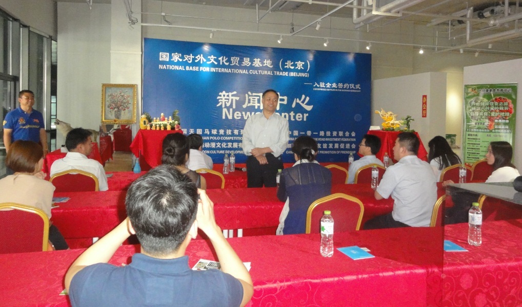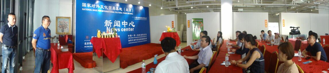 5月28日,2016第四届京交会首日下午,国家对外文化贸易基地(北京)迎来了山西省商务厅副巡视员田国玉率领山西省文化产业代表企业一行10余人考察团并举行现场商务交流会,启动了第四届京交会国家对外文化贸易基地分会场。文化部艺术发展中心文化产业发展研究中心主任张雷雷,歌华文化发展集团总工陈刚,中国(俄罗斯)一带一路投资联合会主席荆宝贵,歌华、国家对外文化贸易基地代表、北京菲利克斯猫动漫发展有限公司总经理、中国传统文化产业发展中心文化金融委员会副主任许洪双,国际文化产业投资洽谈会海外合作中心主任、【平遥论坛】组委会代表王晓玲,北京歌华信德文化贸易中心副总经理张秀菊,北京歌华美术公司赵弈然等40余人出席。中国湛江仲裁委员会国际(北京)文化金融仲裁院、中国湛江国际仲裁院北京文化金融分院院长,中国传统文化产业发展中心文化金融委员会副主任马骏鹏先生主持了此次会议。