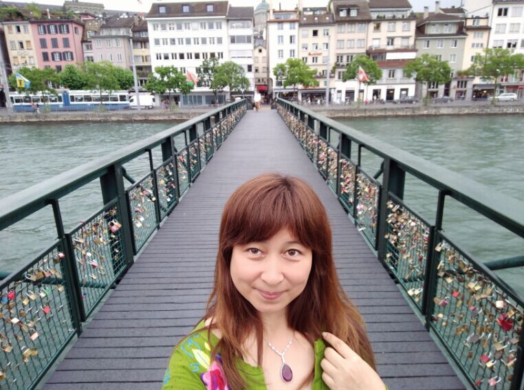 穿过情人桥,就下起了雷阵雨。在路过的小礼品店中逗留半小时,顺便买了两个有瑞士标识的小锁。雨停,灰麻麻多云,出来小店,转角,遇到了正在找寻的尼德道尔夫(Niederdorfstrasse)街巷。因为细长蜿蜒,真不像大街的格局,姑且就叫悠悠小巷吧!