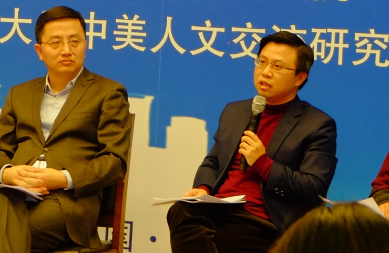 北京大学中美人文交流研究基地执行副主任王栋发言时先讲感受
