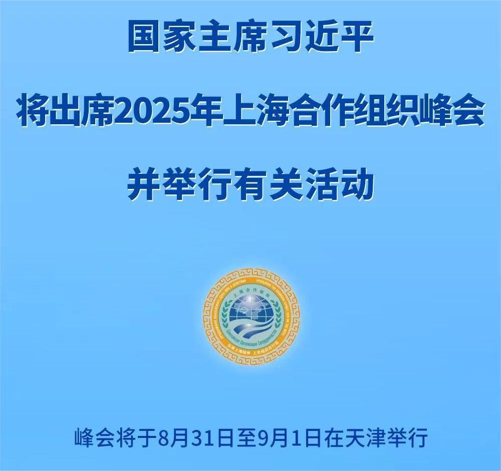 外交部发言人宣布:2025年上海合作组织峰会将于8月31日至9月1日在天津举行。国家主席习近平将主持上海合作组织成员国元首理事会第二十五次会议和“上海合作组织+”会议并发表主旨讲话。峰会期间,习近平主席还将为与会