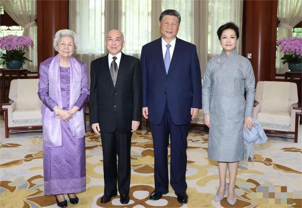 习近平夫妇会见柬埔寨国王西哈莫尼和太后莫尼列
