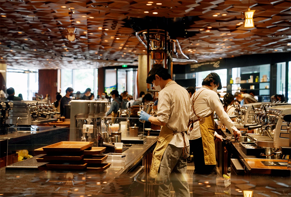 2022年6月3日,星巴克在中国最大的门店——上海烘焙工坊的咖啡师在制作咖啡。新华社记者 刘颖 摄   新华社北京7月20日电 题:外商投资十年之变:中国“机遇之门”越开越大  新华社记者  1999年初,星巴克在北京