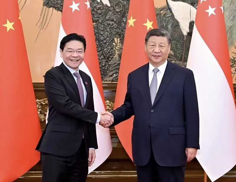 6月24日上午,国家主席习近平在北京人民大会堂会见来华进行正式访问的新加坡总理黄循财。习近平祝贺黄循财胜选连任。习近平指出,今年是中新建交35周年,双方始终坚持相互理解、彼此尊重,为中新关系稳定健康发展提供