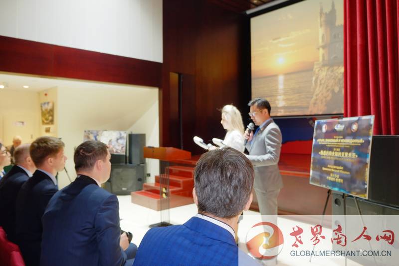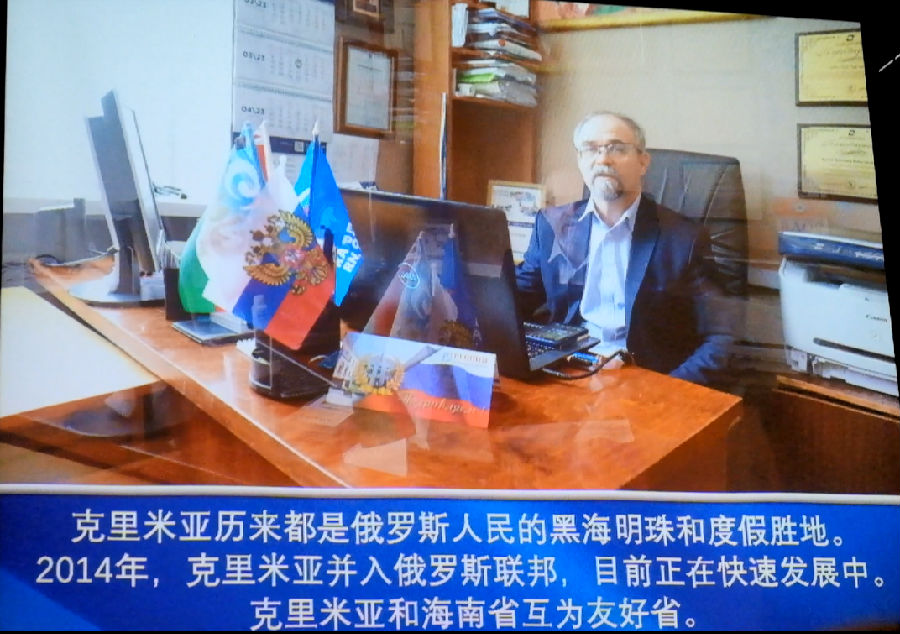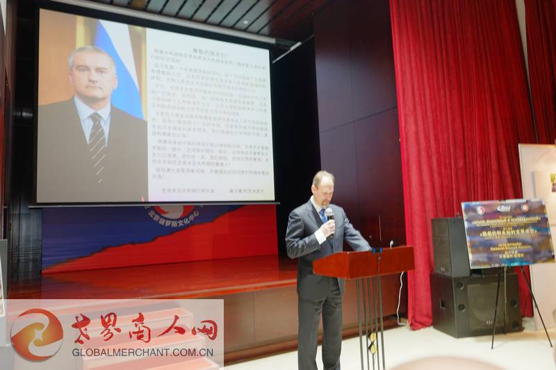 俄罗斯联邦驻华大使馆公使衔参赞热洛霍夫采夫向与会来宾宣读了克里米亚共和国行政长官谢尔盖·瓦列里耶维奇·阿克肖诺夫的致辞
