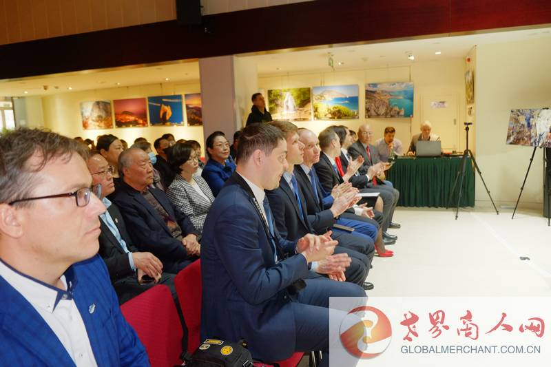 世界商人网创始主编、环球云链国际旅行社总经理王晓玲与俄罗斯联邦驻华大使馆公使衔参赞热洛霍夫采夫先生在“熟悉的和未知的克里米亚”专题摄影活动上合影
