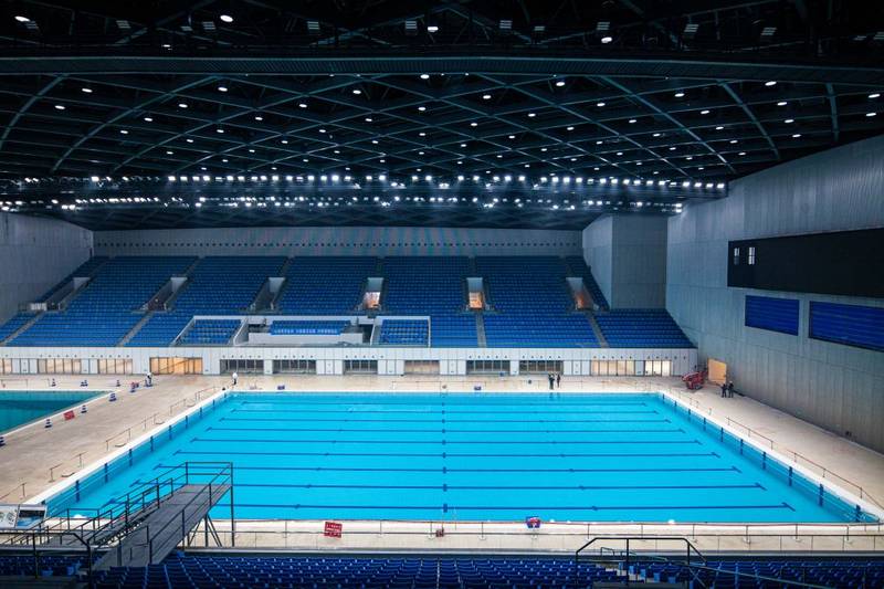 2021年4月12日拍摄的杭州奥体中心游泳馆内景。新华社记者 江汉 摄