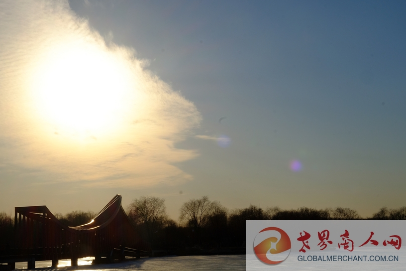 二、台湖湿地公园冬日夕阳:白与红。