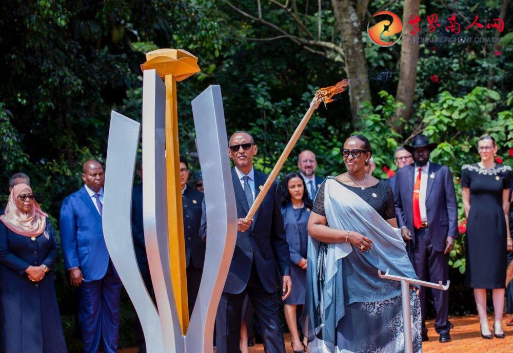 新华社基加利4月17日电  4月7日,在卢旺达首都基加利的基加利大屠杀纪念馆,卢旺达总统保罗·卡加梅与出席纪念活动的各国政要向大屠杀遇难者敬献花圈,随后共同点燃纪念火炬。