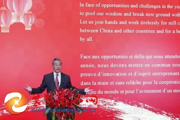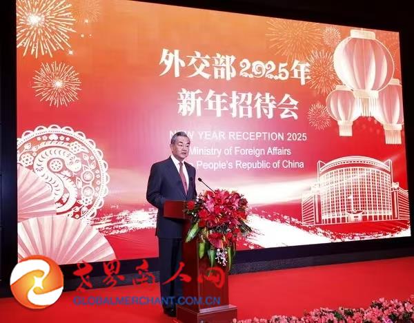 2025年1月24日,中共中央政治局委员、外交部长王毅在北京艺术中心举行外交部2025年新年招待会。中共中央政治局委员、北京市委书记尹力、各国驻华使节和国际组织驻华代表夫妇、中方有关部门代表等约400人出席。