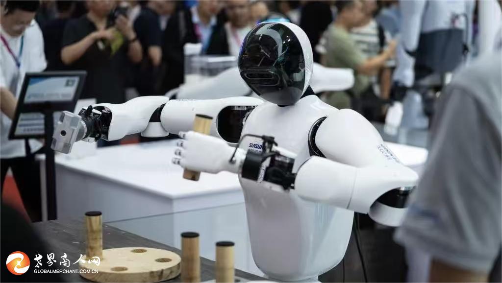 在世界机器人大会展馆内,一款机器人在进行抓取物品功能展示